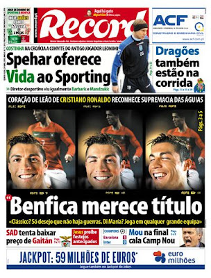 O Sporting de Braga está a um ponto de garantir o apuramento para a fase de qualificação da Liga dos Campeões de 2010/2011 e o Benfica está a um ponto de conseguir ganhar o campeonato nacional de 2009/2010. Tudo isto a duas jornadas do fim da prova quando os exercícios de aritmética vão apertando, apertando… Se quisermos analisar o assunto através do cálculo das probabilidades, conclui-se que é tão difícil para o FC Porto chegar à Liga dos Campeões como é difícil para o Sporting de Braga chegar ao título. No entanto, tratando-se de futebol, tudo é possível. O próprio Domingos Paciência, competente treinador do superBraga, fez questão de recordar há poucos dias que se lembra muito bem de já ter visto o Desportivo da Corunha perder um título nacional espanhol no último minuto do último jogo.